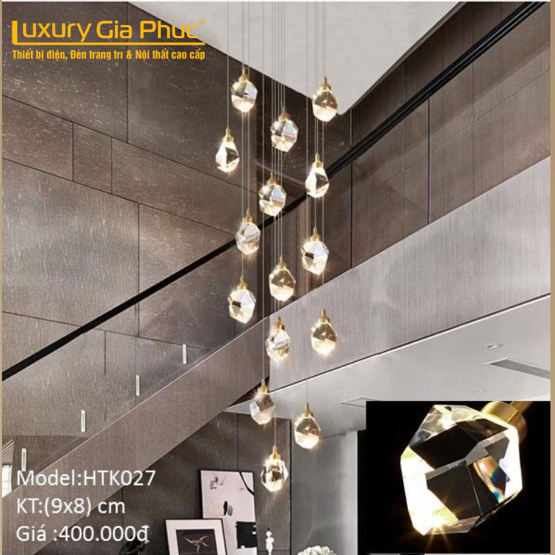 Đèn thả thông tầng hiện đại HTK 027 với phong cách hiện đại tạo nên nét đẹp sang trọng, tinh tế cho mọi không gian. Sản phẩm được hoàn thiện tỉ mỉ bởi chất liệu pha lê Ai Cập nhập khẩu. Đặc biệt quý khách hàng có thể thiết kế đa dạng số lượng bóng phù hợp với từng không gian.