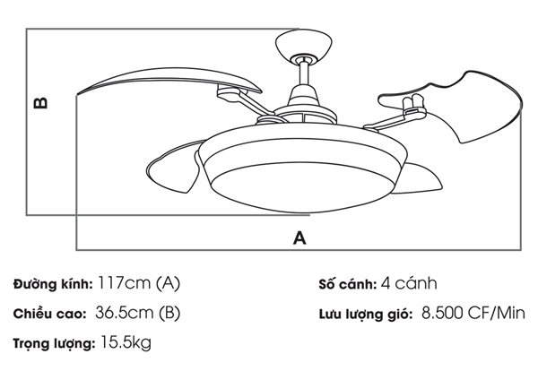 - Cánh quạt được làm bằng nhựa ABS siêu bền