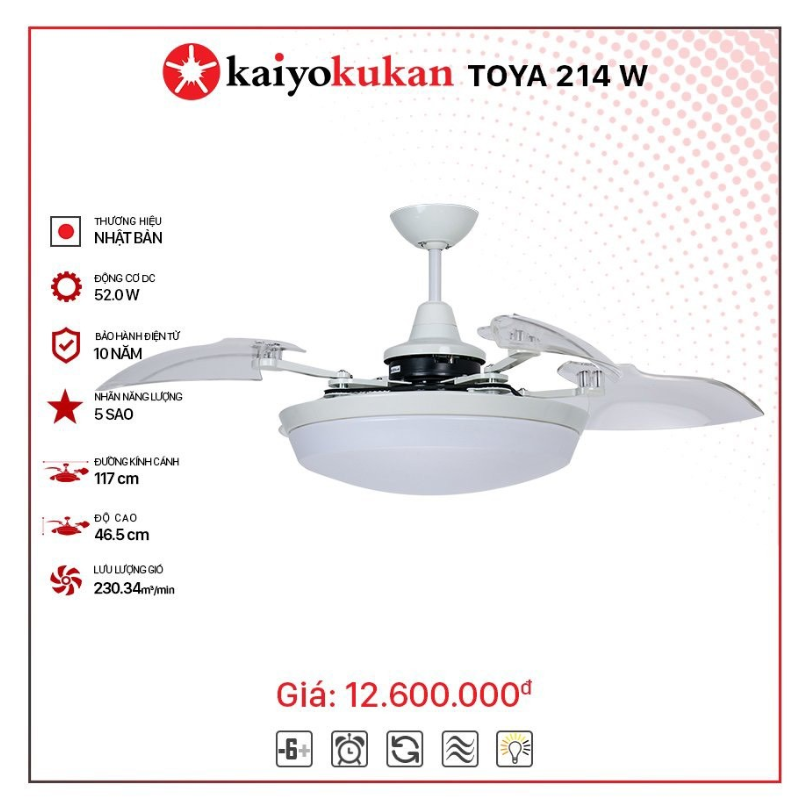 Đánh giá Quạt trần KAIYOKUKAN TOYA 214 W